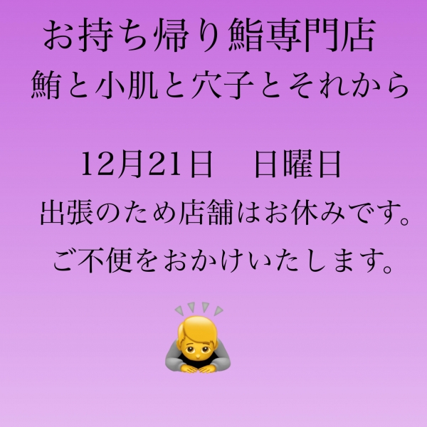 水天宮でテイクアウト鮨「鮪と小肌と穴子とそれから」のブログ お休みのお知らせ